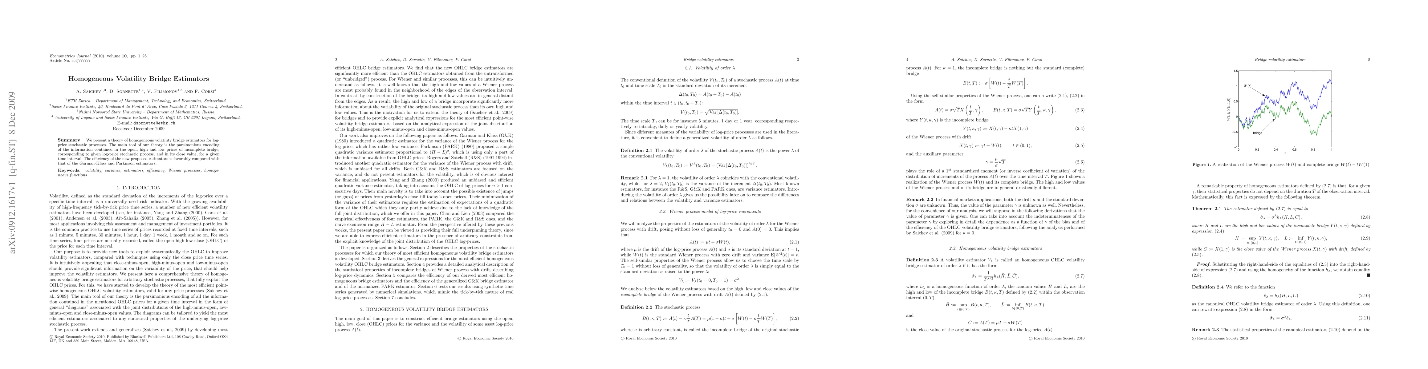 This paper introduces a theory for homogeneous volatility bridge estimators that efficiently encode information from open, high, low, and close prices of incomplete log-price stochastic processes. The proposed estimators outperform existing methods like Garman-Klass and Parkinson estimators in efficiency.