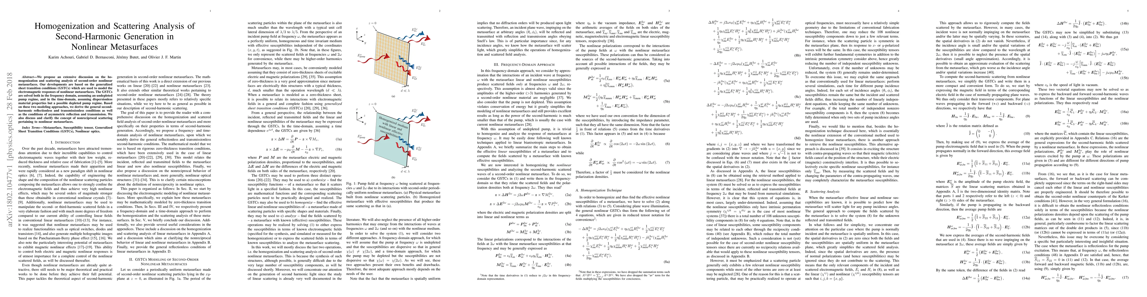 This paper discusses the homogenization and scattering analysis of second-harmonic generation in nonlinear metasurfaces using generalized sheet transition conditions (GSTCs). It explores both frequency and time-domain models, deriving conditions for reflectionless, transmissionless, and asymmetric scattering, and clarifies nonreciprocal scattering in nonlinear metasurfaces.