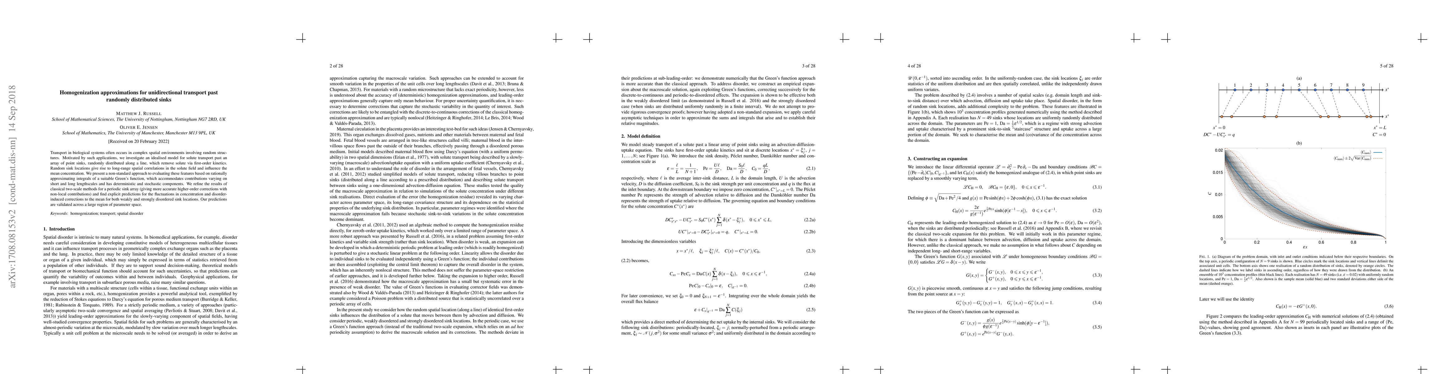 Researchers developed a new method to model solute transport past random sink locations, providing predictions for concentration fluctuations and disorder-induced corrections. Their approach refines existing methods and offers more accurate results across a large range of parameter values.