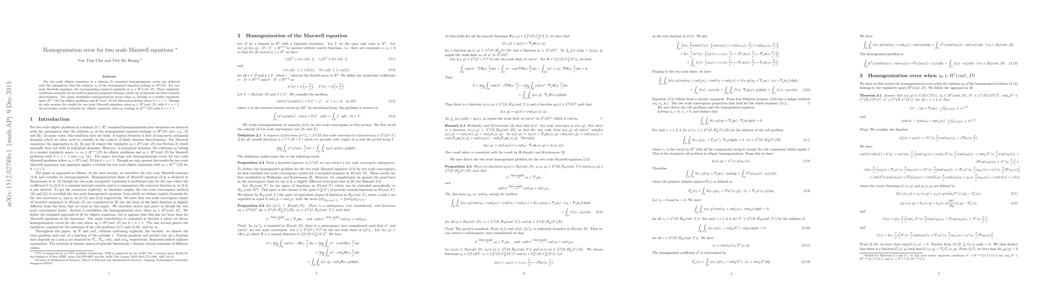 homogenized equation belongs to $H^2(D)$. For two scale Maxwell equations, the