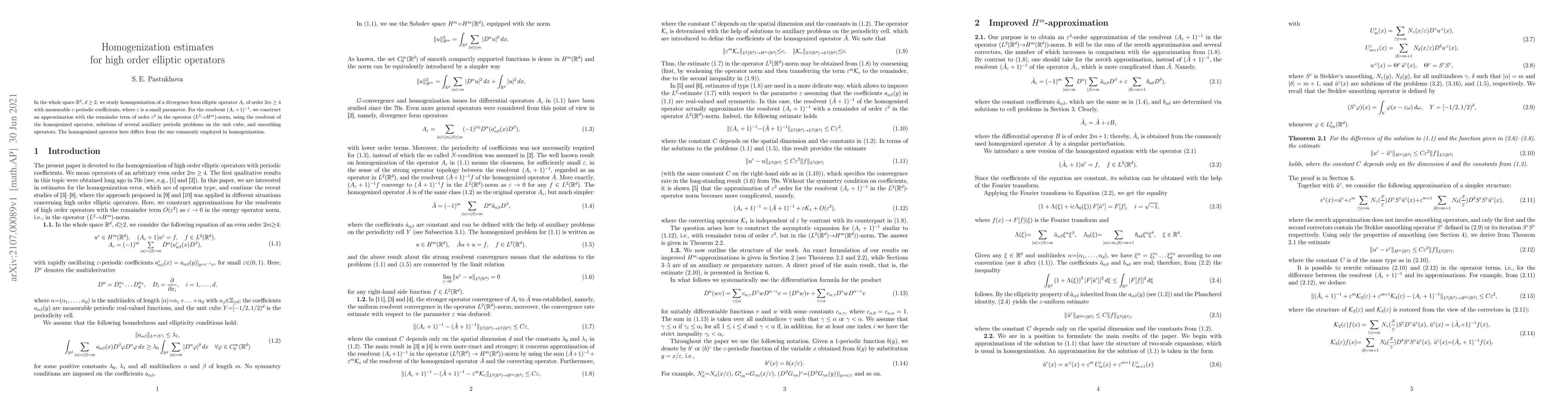 This paper studies the homogenization of high-order elliptic operators in $R^d$ with $\varepsilon$-periodic coefficients, constructing an approximation for the resolvent with an error term of $\varepsilon^2$ in $(L^2 \to H^m)$-norm. It employs the resolvent of the homogenized operator, auxiliary periodic problems, and smoothing techniques.