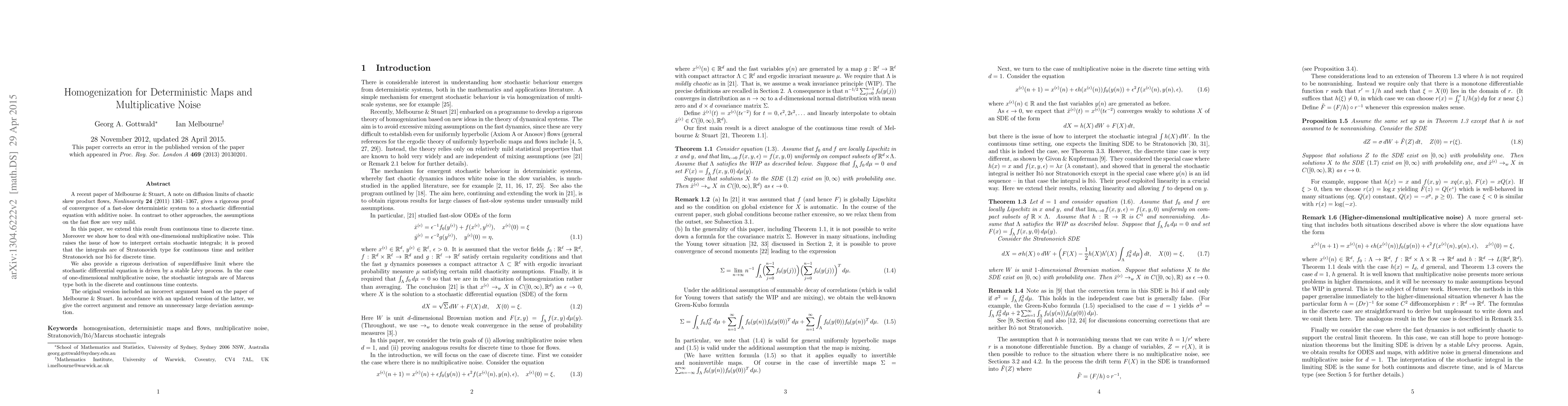 A recent paper of Melbourne & Stuart, A note on diffusion limits of chaotic skew product flows, Nonlinearity 24 (2011) 1361-1367, gives a rigorous proof of convergence of a fast-slow deterministic system to a stochastic differential equation with additive noise. In contrast to other approaches, the assumptions on the fast flow are very mild. In this paper, we extend this result from continuous time to discrete time. Moreover we show how to deal with one-dimensional multiplicative noise. This raises the issue of how to interpret certain stochastic integrals; it is proved that the integrals are of Stratonovich type for continuous time and neither Stratonovich nor Ito for discrete time. We also provide a rigorous derivation of superdiffusive limit where the stochastic differential equation is driven by a stable Levy process. In the case of one-dimensional multiplicative noise, the stochastic integrals are of Marcus type both in the discrete and continuous time contexts.