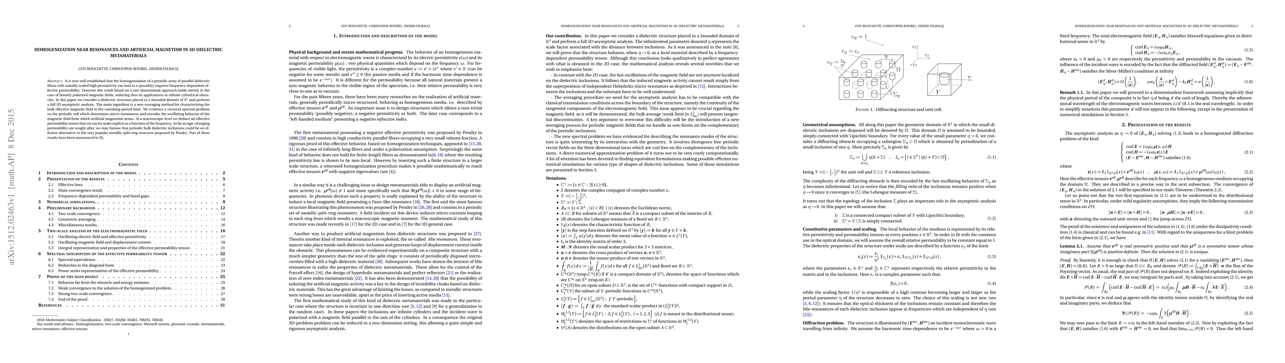 This paper explores the homogenization of 3D dielectric metamaterials with high permittivity, revealing a new averaging method to characterize effective permeability. It identifies micro-resonances that lead to artificial magnetism, suggesting periodic bulk dielectric inclusions as an alternative to metallic split-ring resonators.
