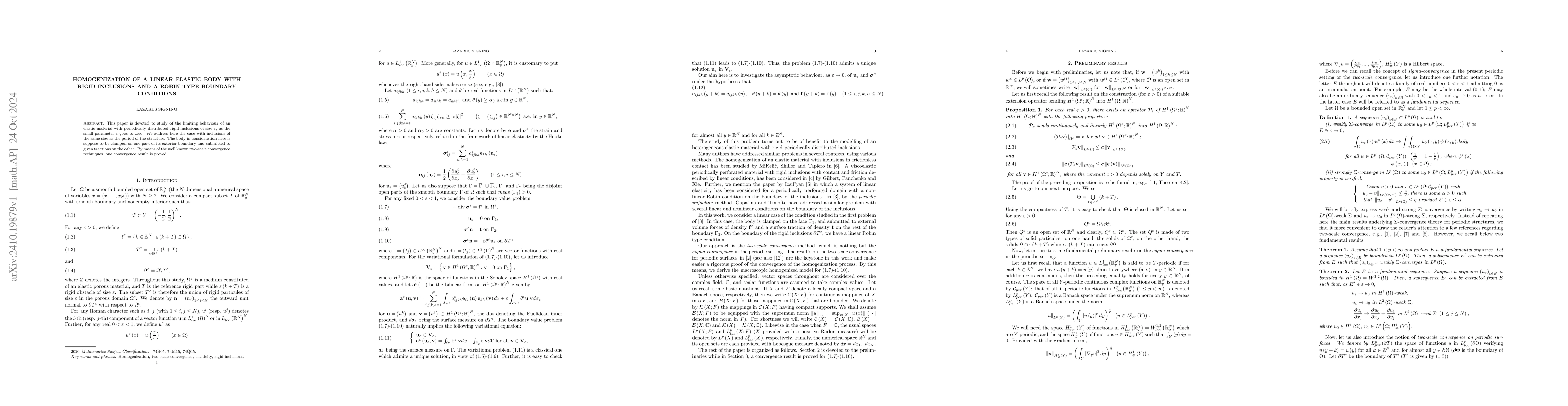 This paper investigates the limiting behavior of an elastic material with periodically distributed rigid inclusions as the inclusion size approaches zero, focusing on the case where inclusion size equals the structure period. A convergence result is established using two-scale convergence techniques under Robin boundary conditions.
