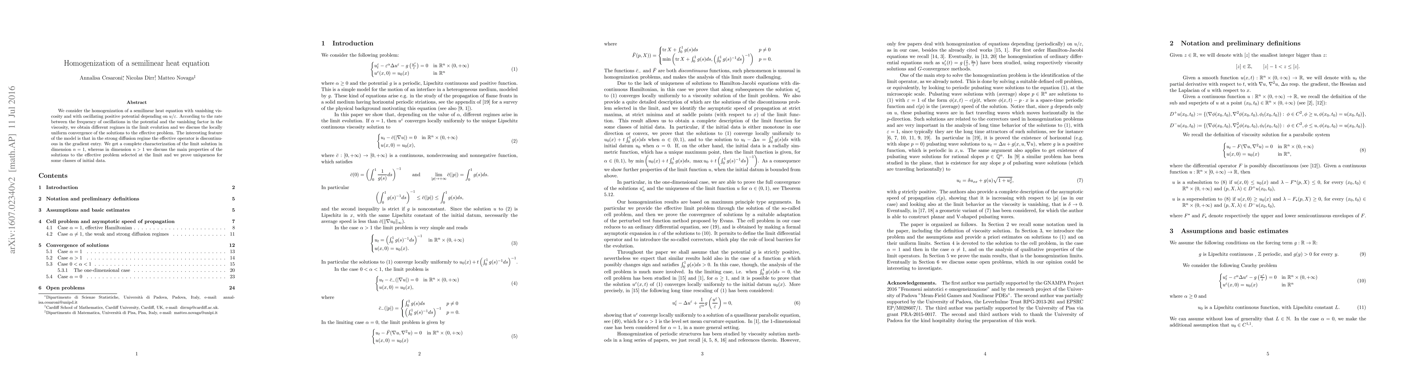 We consider the homogenization of a semilinear heat equation with vanishing viscosity and with oscillating positive potential depending on $u/\varepsilon$. According to the rate between the frequency of oscillations in the potential and the vanishing factor in the viscosity, we obtain different regimes in the limit evolution and we discuss the locally uniform convergence of the solutions to the effective problem. The interesting feature of the model is that in the strong diffusion regime the effective operator is discontinuous in the gradient entry. We get a complete characterization of the limit solution in dimension $n=1$, whereas in dimension $n>1$ we discuss the main properties of the solutions to the effective problem selected at the limit and we prove uniqueness for some classes of initial data.