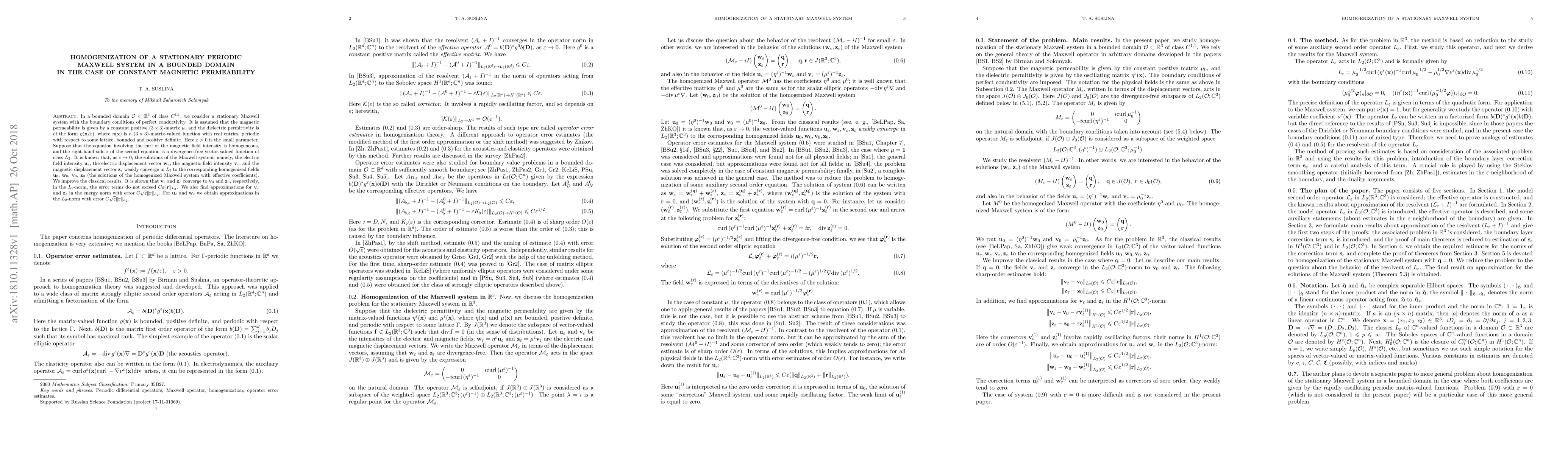 This research paper investigates how a stationary Maxwell system behaves when its magnetic permeability is constant and its dielectric permittivity varies periodically within a bounded domain, with solutions converging to homogenized fields as the small parameter epsilon approaches 0.