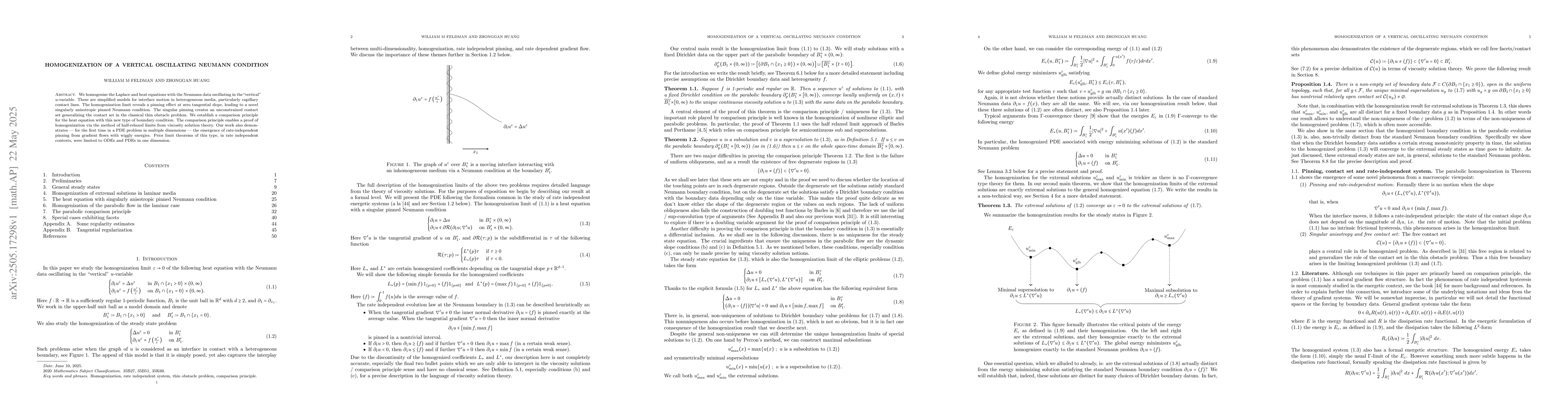 The research employs homogenization techniques for Laplace and heat equations with oscillating Neumann data in the vertical $u$-variable, modeling interface motion in heterogeneous media like capillary contact lines.