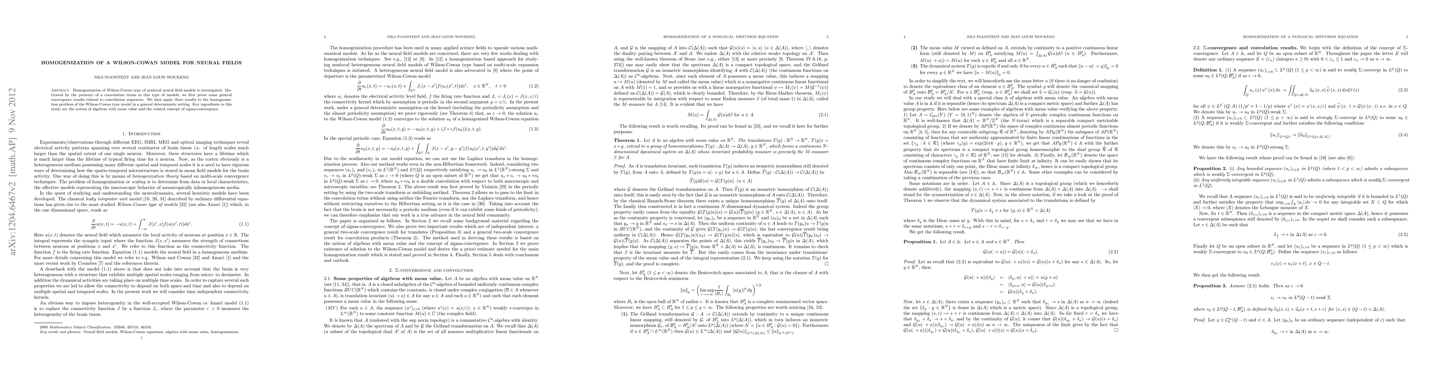 This paper investigates the homogenization of Wilson-Cowan neural field models, focusing on the convolution terms. It establishes convergence results for convolution sequences and applies these to solve the homogenization problem, using algebras with mean value and sigma-convergence.