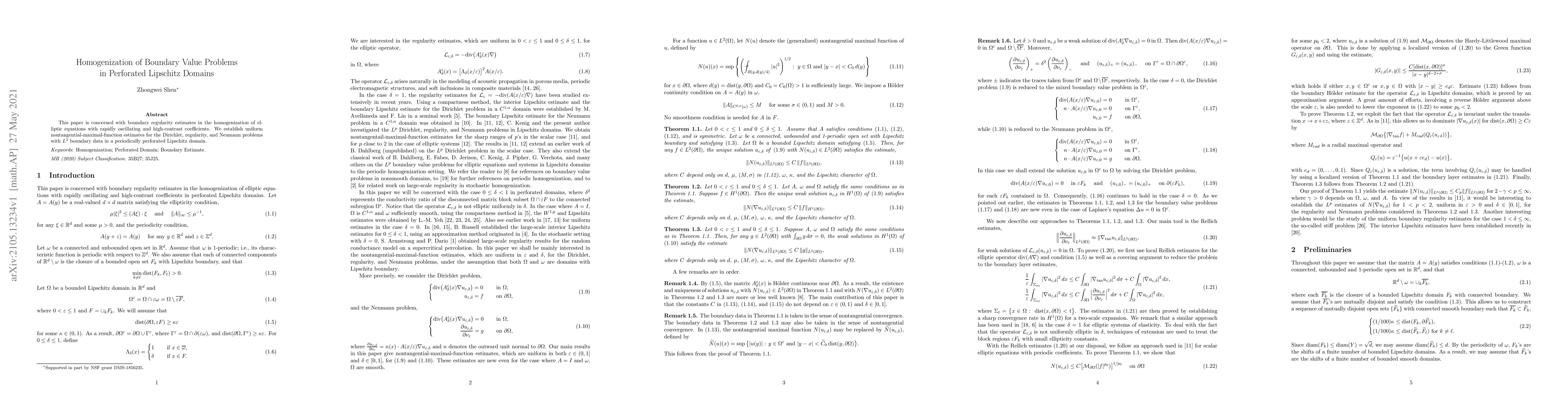 This paper is concerned with boundary regularity estimates in the homogenization of elliptic equations with rapidly oscillating and high-contrast coefficients. We establish uniform nontangential-maximal-function estimates for the Dirichlet, regularity, and Neumann problems with $L^2$ boundary data in a periodically perforated Lipschitz domain.