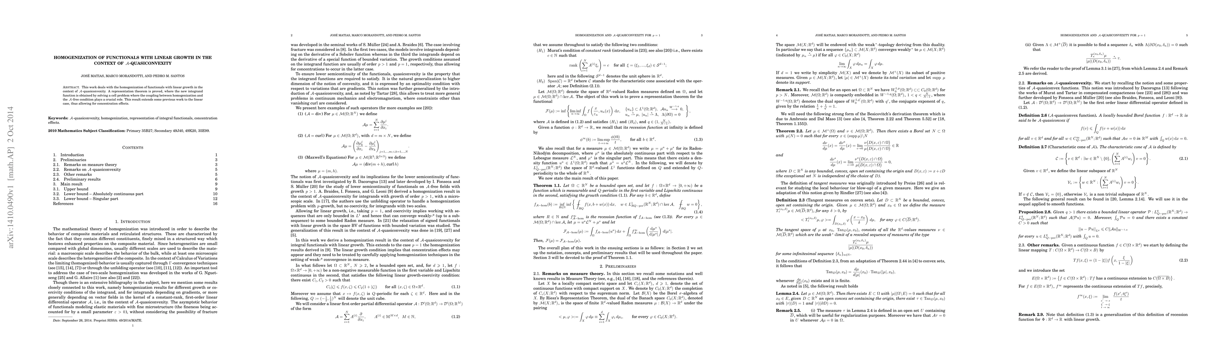 Researchers developed a representation theorem for homogenization of functionals with linear growth in $ ext{A}$-quasiconvexity conditions, extending previous work to the linear case and enabling concentration effects.
