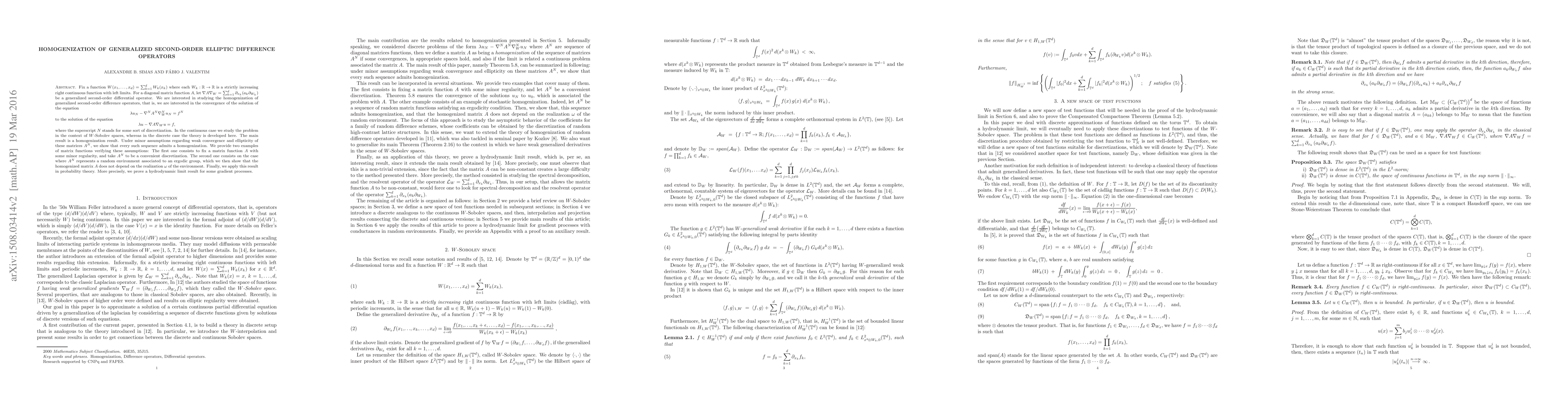 A study on homogenization of generalized second-order elliptic difference operators shows that every sequence of discretized matrices can be homogenized under minor assumptions, leading to applications in probability theory, such as a hydrodynamic limit result for gradient processes.