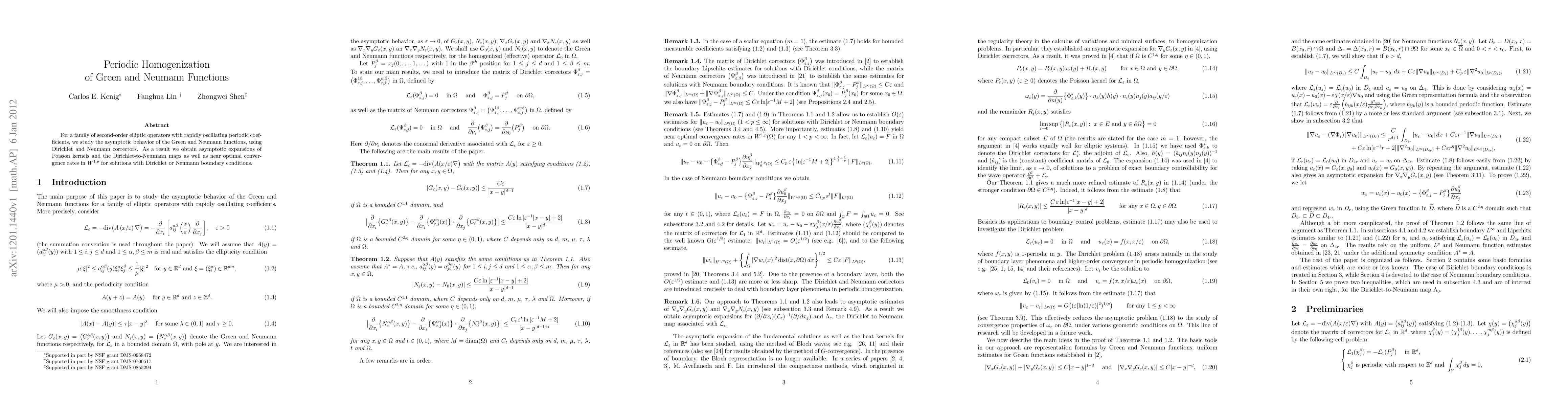 This research paper studies the asymptotic behavior of Green and Neumann functions for second-order elliptic operators with rapidly oscillating periodic coefficients, leading to near-optimal convergence rates in $W^{1,p}$.