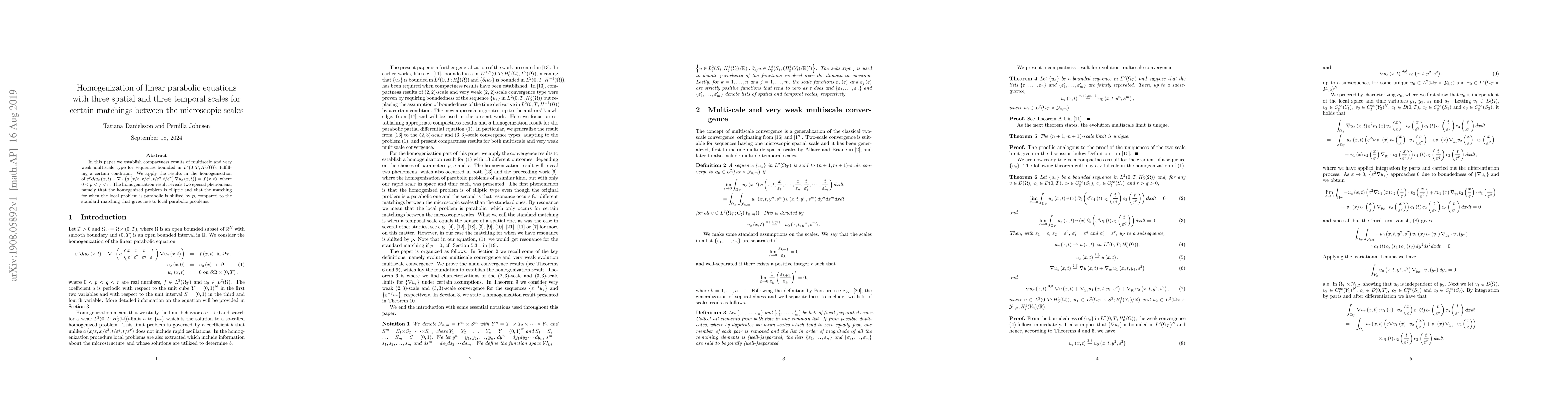 Researchers establish compactness results for multiscale equations with specific matchings between microscopic scales, leading to a homogenized problem that is elliptic and reveals shifted matching conditions.