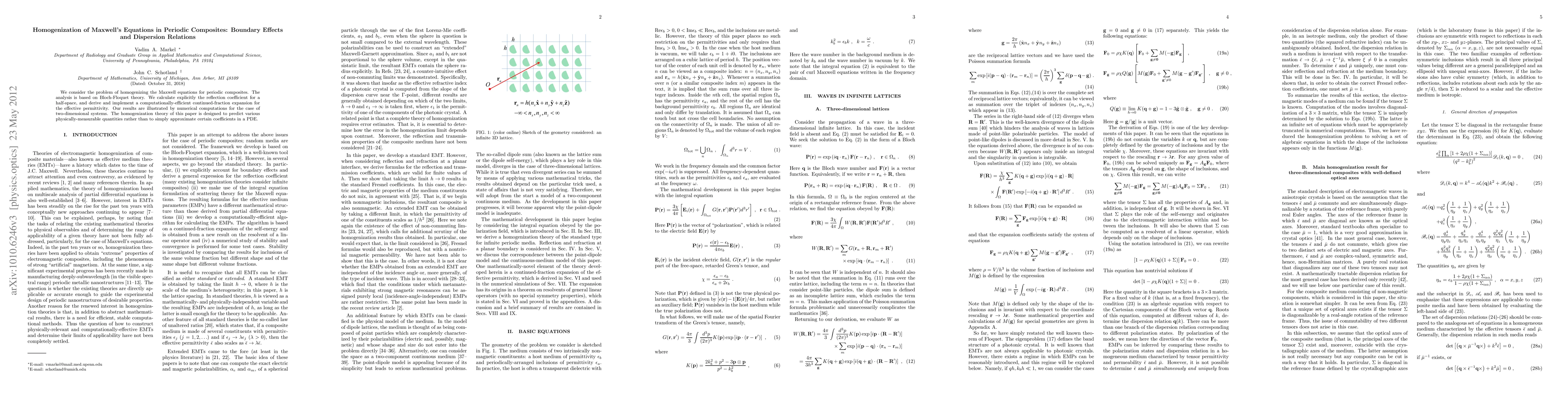 We consider the problem of homogenizing the Maxwell equations for periodic composites. The analysis is based on Bloch-Floquet theory. We calculate explicitly the reflection coefficient for a half-space, and derive and implement a computationally-efficient continued-fraction expansion for the effective permittivity. Our results are illustrated by numerical computations for the case of two-dimensional systems. The homogenization theory of this paper is designed to predict various physically-measurable quantities rather than to simply approximate certain coefficients in a PDE.