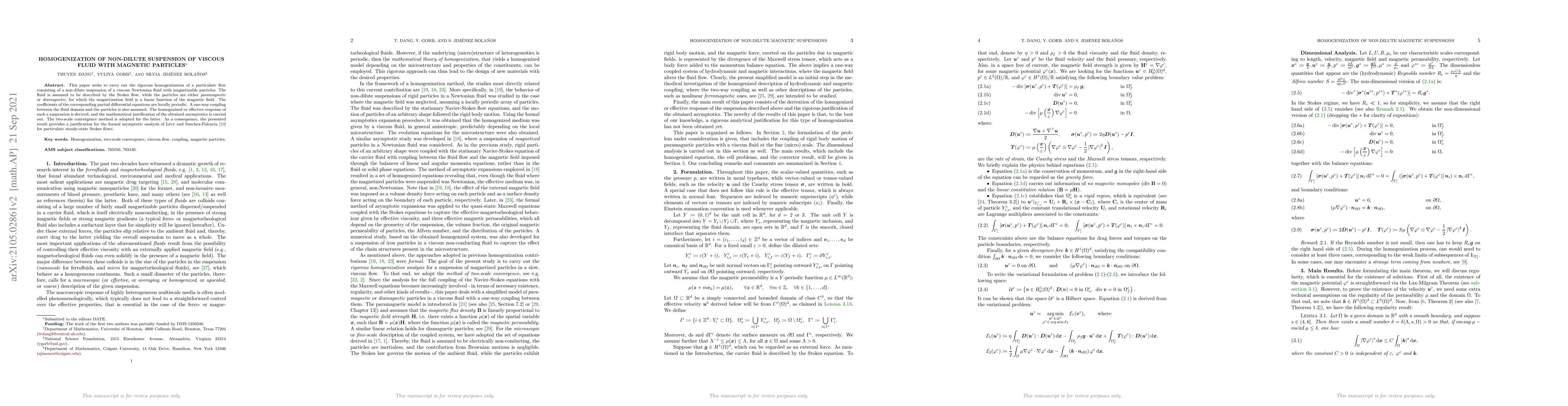 The paper presents a detailed homogenization process for particulate flows with magnetic particles, providing mathematical justification for the asymptotic analysis.
