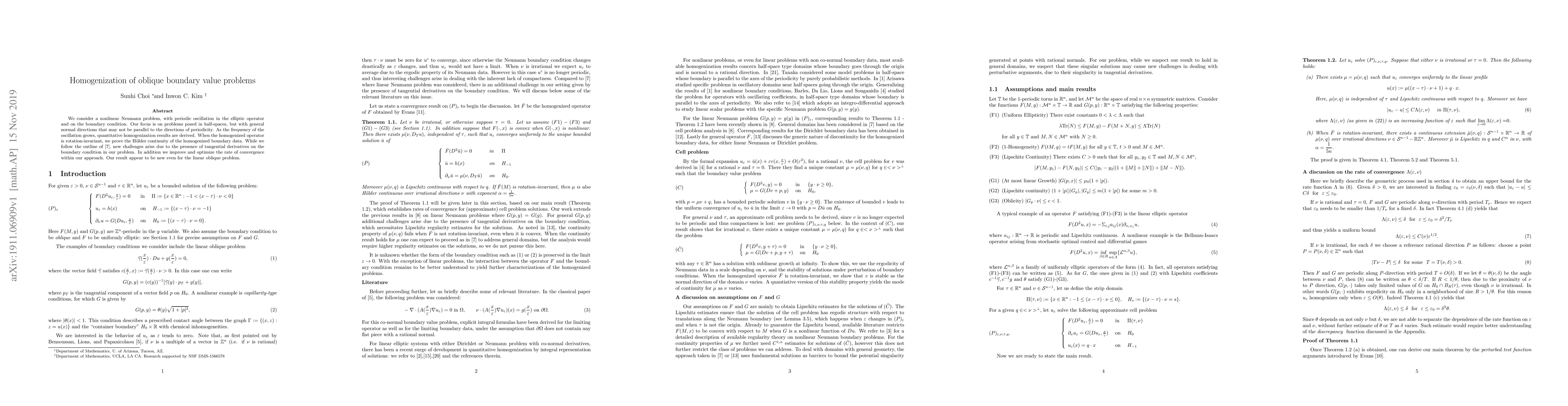 We consider a nonlinear Neumann problem, with periodic oscillation in the elliptic operator and on the boundary condition. Our focus is on problems posed in half-spaces, but with general normal directions that may not be parallel to the directions of periodicity. As the frequency of the oscillation grows, quantitative homogenization results are derived. When the homogenized operator is rotation-invariant, we prove the H\"{o}lder continuity of the homogenized boundary data.