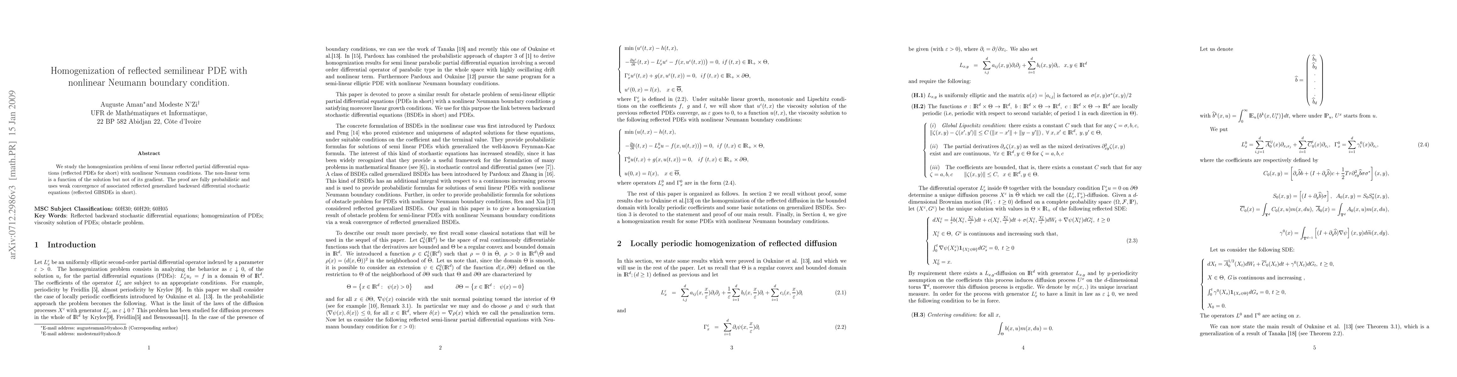 This paper investigates the homogenization of semilinear reflected partial differential equations with nonlinear Neumann boundary conditions, where the non-linear term depends on the solution but not on its gradient. The proof relies on probabilistic methods and the weak convergence of reflected generalized backward differential stochastic equations.