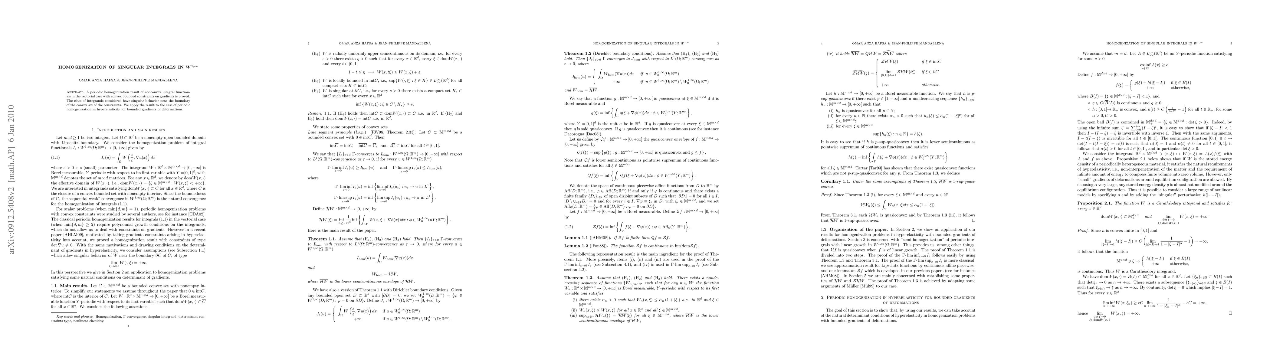 Summary: This paper establishes a periodic homogenization result for nonconvex vectorial integral functionals under bounded gradient constraints, focusing on integrands with singular behavior near boundary constraints. The result is applied to periodic homogenization in hyperelasticity with limited deformation gradients.