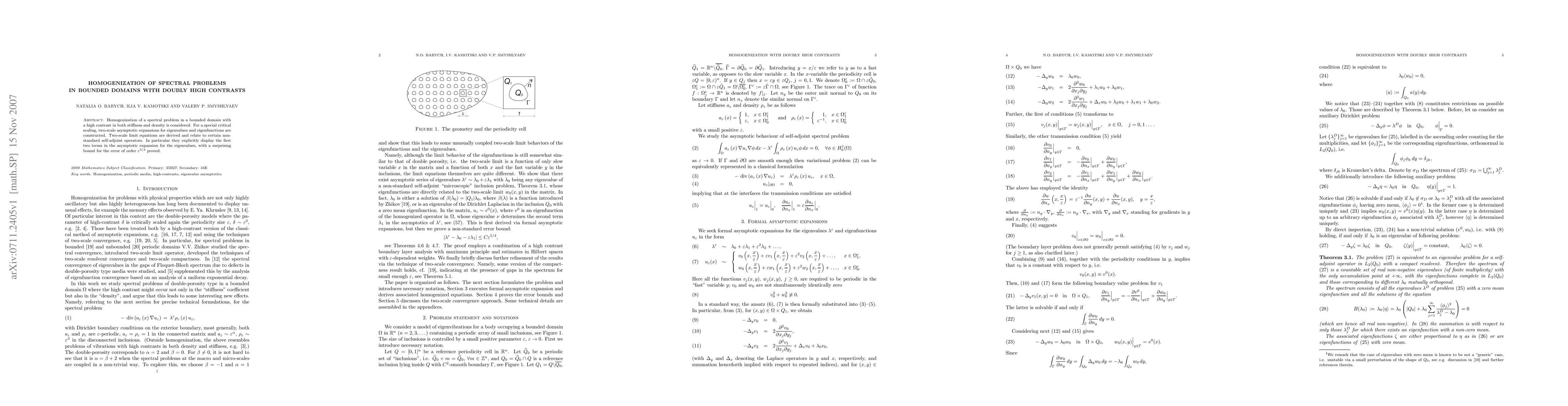 This paper constructs two-scale asymptotic expansions for eigenvalues and eigenfunctions in a spectral problem with high contrasts in stiffness and density in a bounded domain, deriving non-standard self-adjoint limit equations and proving an error bound of order \(\epsilon^{5/4}\) for the expansions.