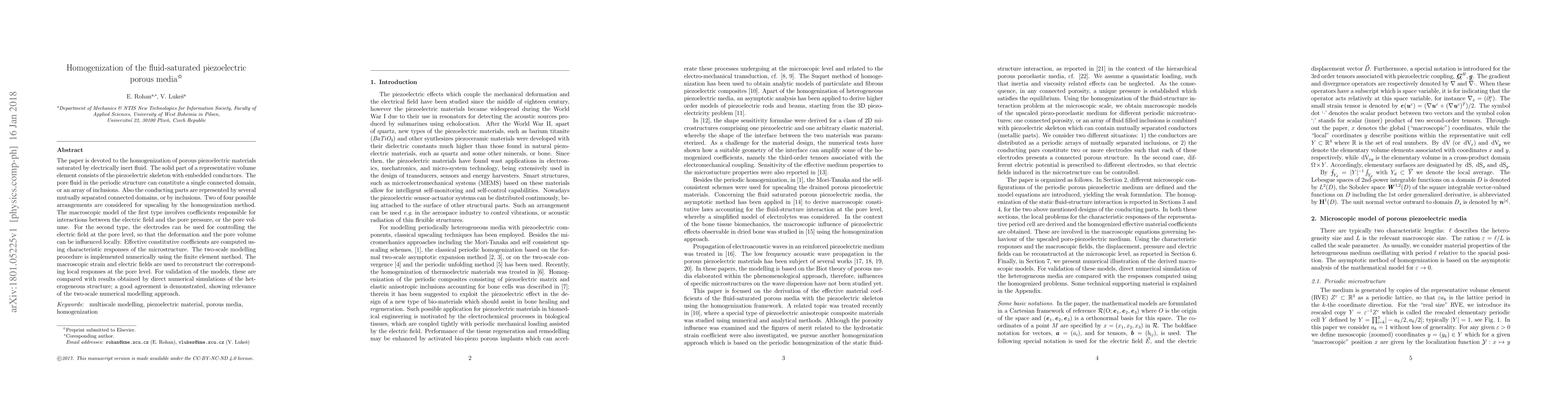 This paper investigates the homogenization of fluid-saturated piezoelectric porous media, focusing on the effective constitutive coefficients for two specific arrangements. The study employs a two-scale numerical modeling approach using the finite element method to validate the macroscopic model against direct simulations of the heterogeneous structure.