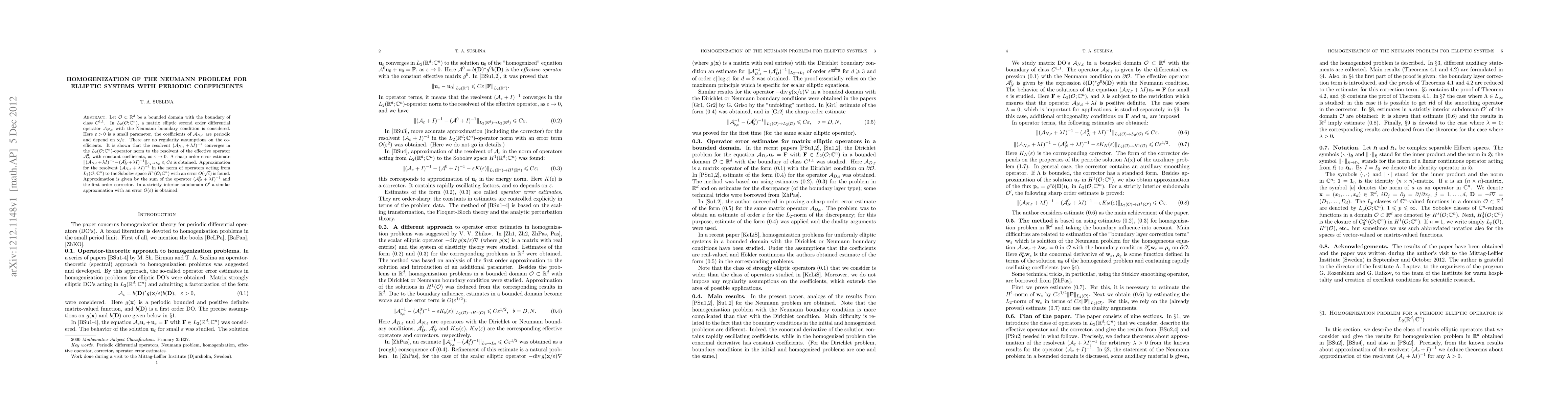 Let ${\mathcal O} \subset {\mathbb R}^d$ be a bounded domain with the boundary of class $C^{1,1}$. In $L_2({\mathcal O};{\mathbb C}^n)$, a matrix elliptic second order differential operator ${\mathcal A}_{N,\varepsilon}$ with the Neumann boundary condition is considered. Here $\varepsilon>0$ is a small parameter, the coefficients of ${\mathcal A}_{N,\varepsilon}$ are periodic and depend on ${\mathbf x} /\varepsilon$. There are no regularity assumptions on the coefficients. It is shown that the resolvent $({\mathcal A}_{N,\varepsilon}+\lambda I)^{-1}$ converges in the $L_2({\mathcal O};{\mathbb C}^n)$-operator norm to the resolvent of the effective operator ${\mathcal A}_N^0$ with constant coefficients, as $\varepsilon \to 0$. A sharp order error estimate $|({\mathcal A}_{N,\varepsilon}+\lambda I)^{-1} - ({\mathcal A}_{N}^0 +\lambda I)^{-1}|_{L_2\to L_2} \le C\varepsilon$ is obtained. Approximation for the resolvent $({\mathcal A}_{N,\varepsilon}+\lambda I)^{-1}$ in the norm of operators acting from $L_2({\mathcal O};{\mathbb C}^n)$ to the Sobolev space $H^1({\mathcal O};{\mathbb C}^n)$ with an error $O(\sqrt{\varepsilon})$ is found. Approximation is given by the sum of the operator $({\mathcal A}^0_N +\lambda I)^{-1}$ and the first order corrector. In a strictly interior subdomain ${\mathcal O}'$ a similar approximation with an error $O(\varepsilon)$ is obtained.