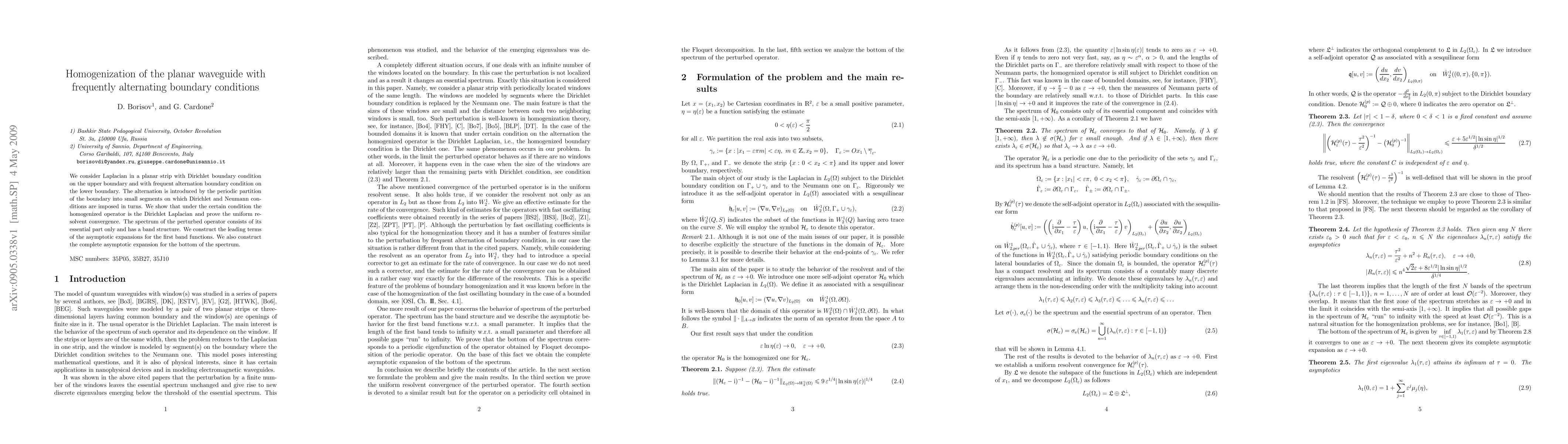 This paper studies the Laplacian in a planar strip with a Dirichlet condition on the upper boundary and frequently alternating boundary conditions on the lower boundary. It demonstrates that under specific conditions, the homogenized operator becomes the Dirichlet Laplacian, proving uniform resolvent convergence and constructing asymptotic expansions for the spectrum.