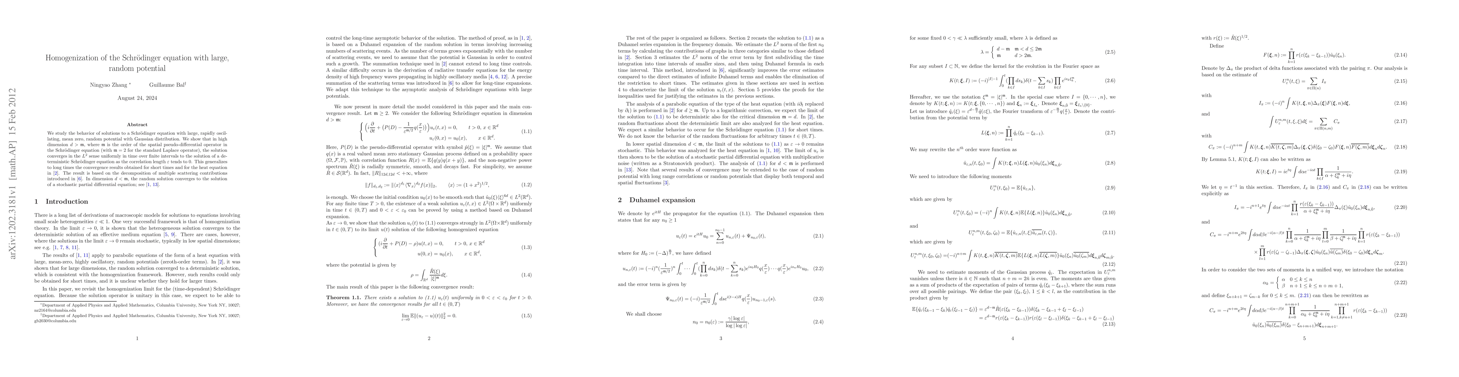Researchers show that solutions to a Schrödinger equation with large random potentials converge in high dimensions to the solution of a deterministic equation as the correlation length tends to 0.