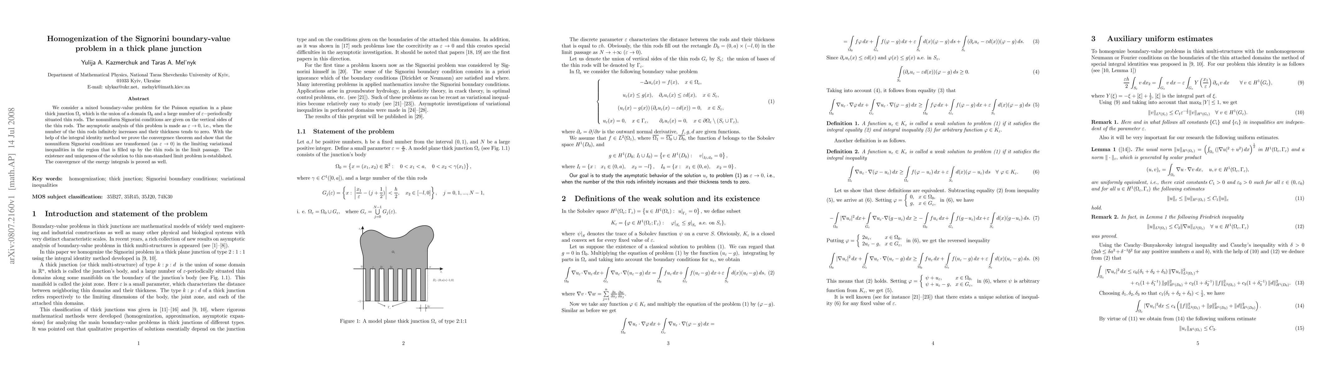 Researchers analyze a complex boundary-value problem in a thin rod junction as υ approaches 0, proving convergence to limiting variational inequalities and establishing existence/uniqueness of the solution and energy integral convergence.