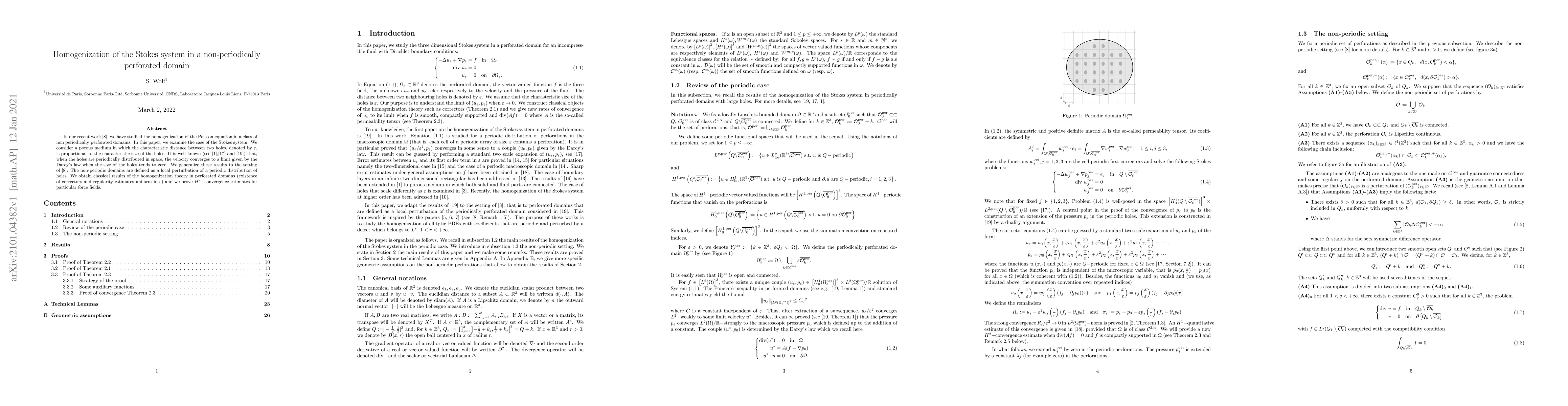 This paper studies the homogenization of the Stokes system in non-periodically perforated domains, generalizing previous results for the Poisson equation in similar settings. The authors demonstrate the convergence of velocity to a limit governed by Darcy's law, with $H^2$-convergence estimates for specific force fields.