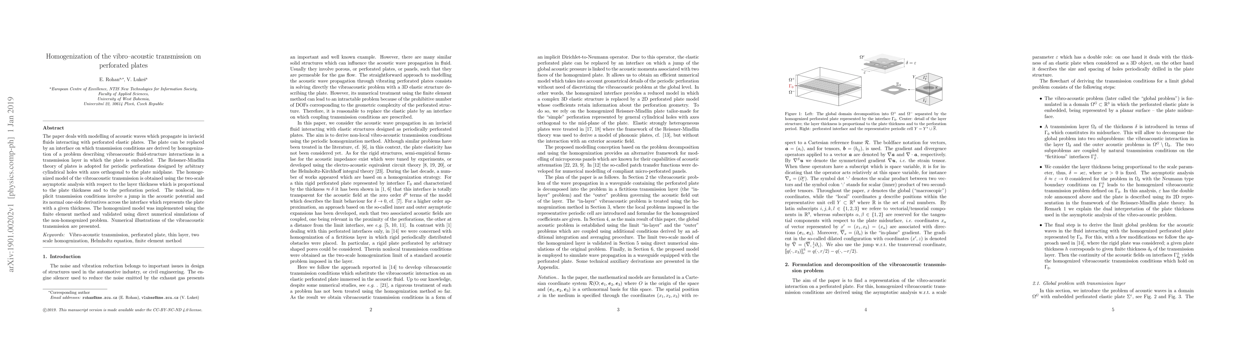 Researchers developed a model to study how sound waves travel through perforated plates, using homogenization techniques to simplify complex interactions between fluid and structure. Their findings were validated through numerical simulations and provide insights into the acoustic transmission on such plates.