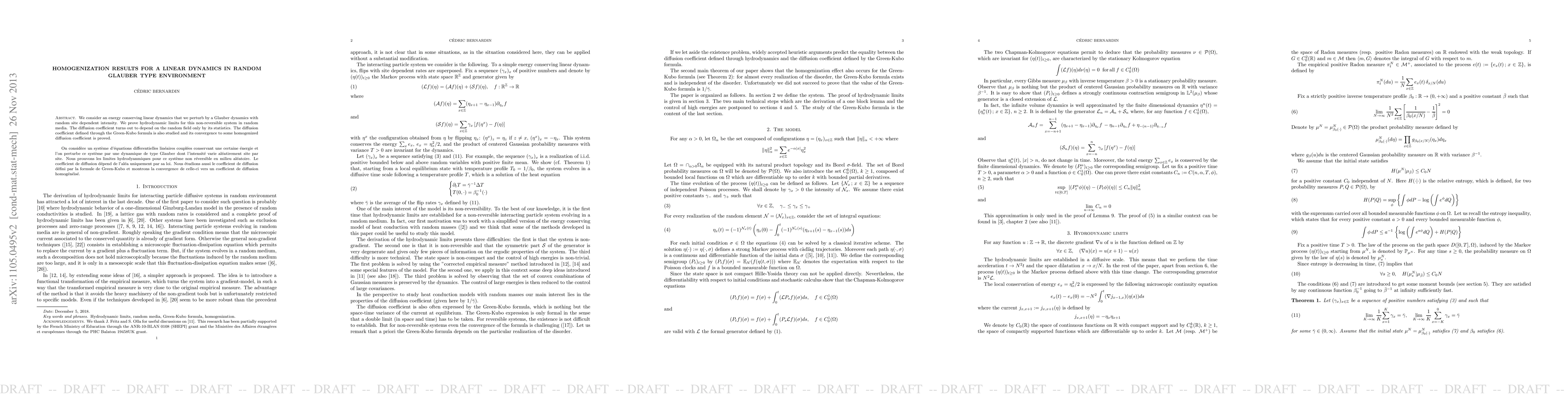 We consider an energy conserving linear dynamics that we perturb by a Glauber dynamics with random site dependent intensity. We prove hydrodynamic limits for this non-reversible system in random media. The diffusion coefficient turns out to depend on the random field only by its statistics. The diffusion coefficient defined through the Green-Kubo formula is also studied and its convergence to some homogenized diffusion coefficient is proved.
