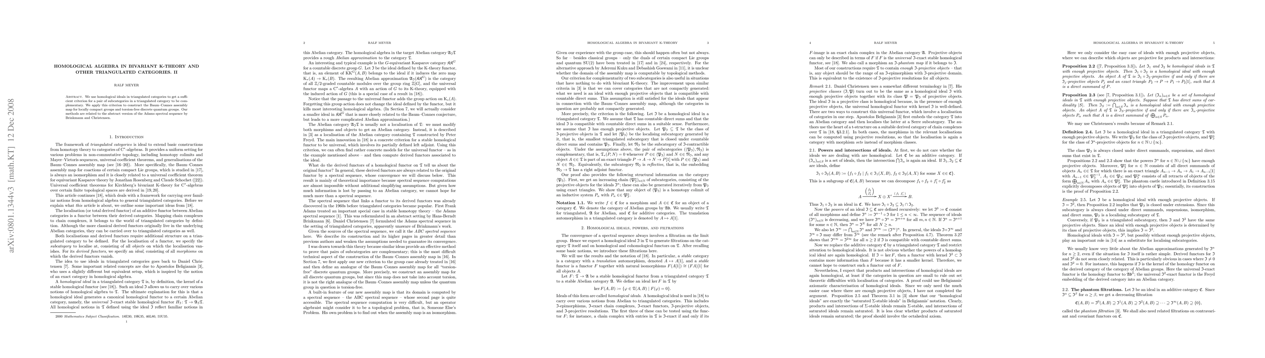 We use homological ideals in triangulated categories to get a sufficient criterion for a pair of subcategories in a triangulated category to be complementary. We apply this criterion to construct the Baum-Connes assembly map for locally compact groups and torsion-free discrete quantum groups. Our methods are related to the abstract version of the Adams spectral sequence by Brinkmann and Christensen.