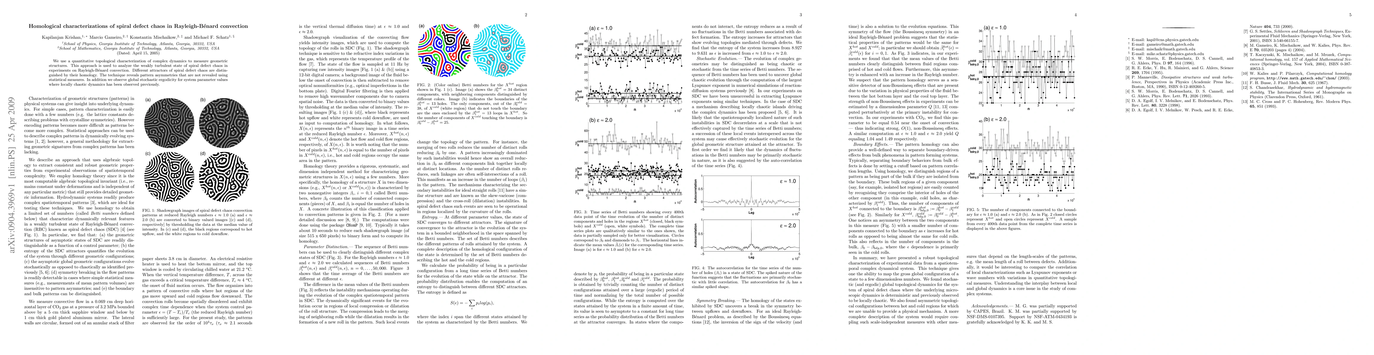 We use a quantitative topological characterization of complex dynamics to measure geometric structures. This approach is used to analyze the weakly turbulent state of spiral defect chaos in experiments on Rayleigh-Benard convection. Different attractors of spiral defect chaos are distinguished by their homology. The technique reveals pattern asymmetries that are not revealed using statistical measures. In addition we observe global stochastic ergodicity for system parameter values where locally chaotic dynamics has been observed previously.