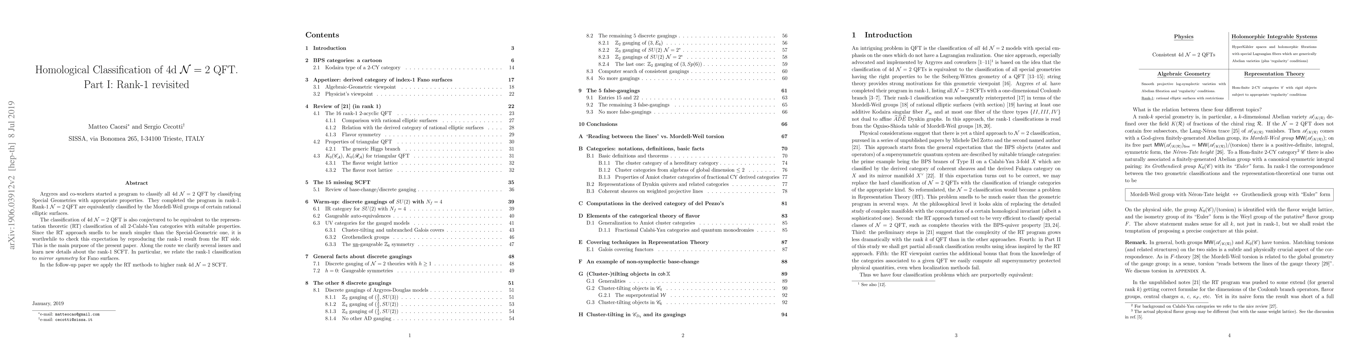 This paper revisits the classification of rank-1 4d $\mathcal{N}=2$ QFTs by comparing the Special Geometric approach with the representation theoretic classification of 2-Calabi-Yau categories. It confirms the equivalence between these methods and provides new insights into rank-1 SCFTs, including connections to mirror symmetry for Fano surfaces.