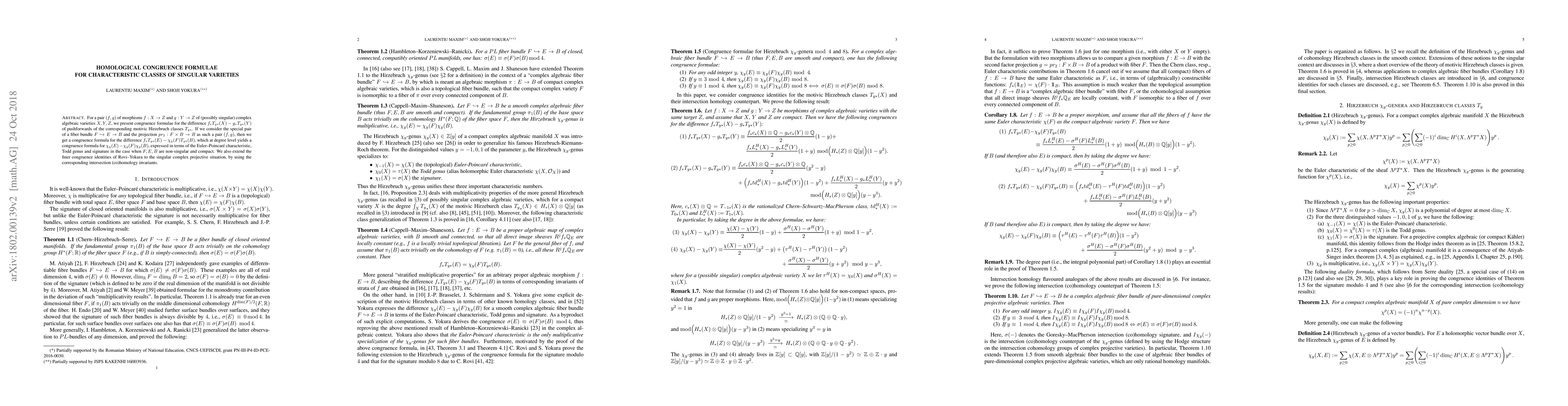 For a pair $(f, g)$ of morphisms $f:X \to Z$ and $g:Y \to Z$ of (possibly singular) complex algebraic varieties $X,Y,Z$, we present congruence formulae for the difference $f_*T_{y*}(X) -g_*T_{y*}(Y)$ of pushforwards of the corresponding motivic Hirzebruch classes $T_{y*}$. If we consider the special pair of a fiber bundle $F \hookrightarrow E \to B$ and the projection $pr_2:F \times B \to B$ as such a pair $(f,g)$, then we get a congruence formula for the difference $f_*T_{y*}(E) -\chi_y(F)T_{y*}(B)$, which at degree level yields a congruence formula for $\chi_y(E) -\chi_y(F)\chi_y(B)$, expressed in terms of the Euler--Poincarv'e characteristic, Todd genus and signature in the case when $F, E, B$ are non-singular and compact. We also extend the finer congruence identities of Rovi--Yokura to the singular complex projective situation, by using the corresponding intersection (co)homology invariants.