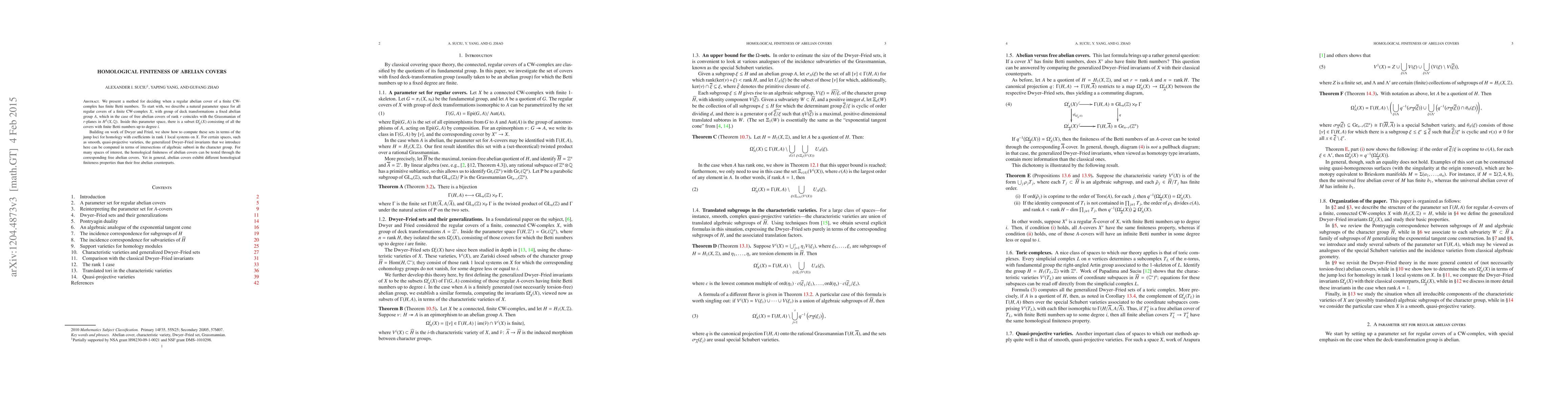 This paper introduces a method to determine the homological finiteness of regular abelian covers of finite CW-complexes by defining a parameter space and showing how to compute sets of covers with finite Betti numbers using jump loci for homology. It highlights differences in homological properties between abelian and free abelian covers, particularly for smooth, quasi-projective varieties.