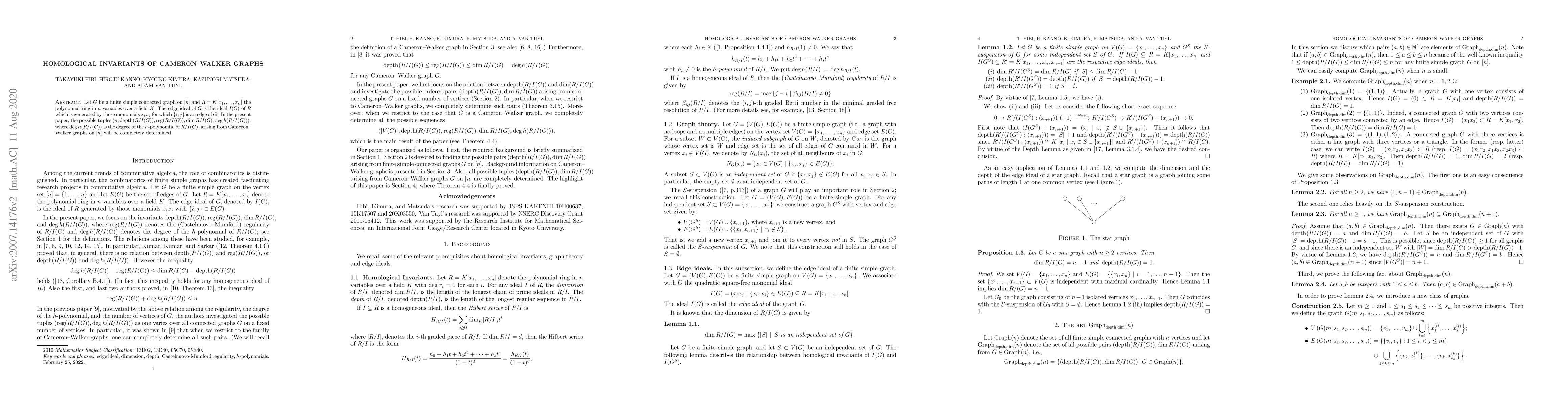 Let $G$ be a finite simple connected graph on $[n]$ and $R = K[x_1, \ldots, x_n]$ the polynomial ring in $n$ variables over a field $K$. The edge ideal of $G$ is the ideal $I(G)$ of $R$ which is generated by those monomials $x_ix_j$ for which $\{i, j\}$ is an edge of $G$. In the present paper, the possible tuples $(n, {\rm depth} (R/I(G)), {\rm reg} (R/I(G)), \dim R/I(G), {\rm deg} \ h(R/I(G)))$, where ${\rm deg} \ h(R/I(G))$ is the degree of the $h$-polynomial of $R/I(G)$, arising from Cameron--Walker graphs on $[n]$ will be completely determined.
