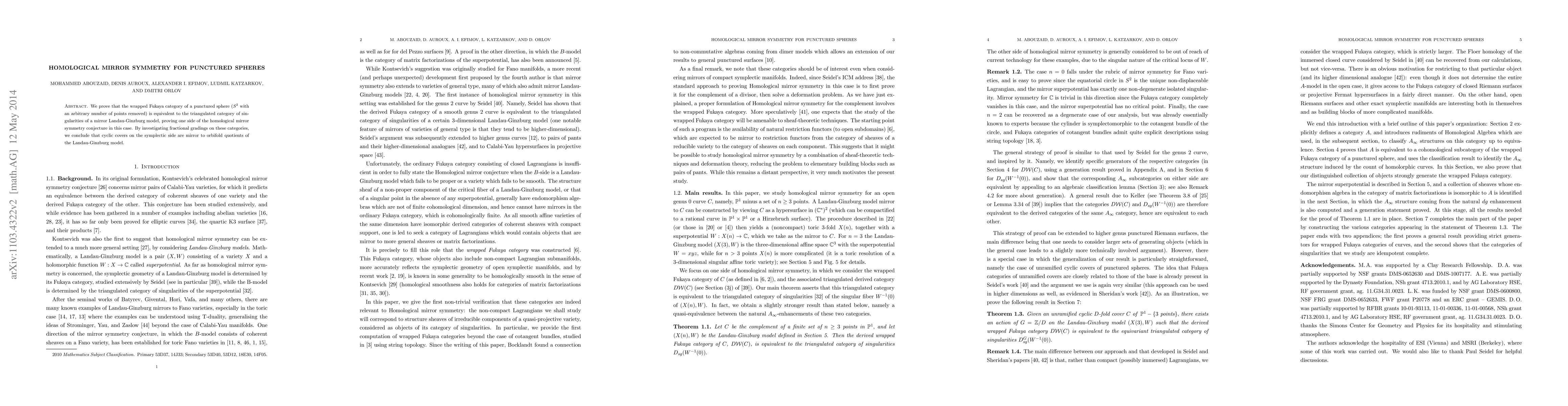 This paper proves the equivalence between the wrapped Fukaya category of a punctured sphere and the triangulated category of singularities of a mirror Landau-Ginzburg model, establishing part of the homological mirror symmetry conjecture for this setup. It also links cyclic covers on the symplectic side to orbifold quotients in the Landau-Ginzburg model through fractional gradings.