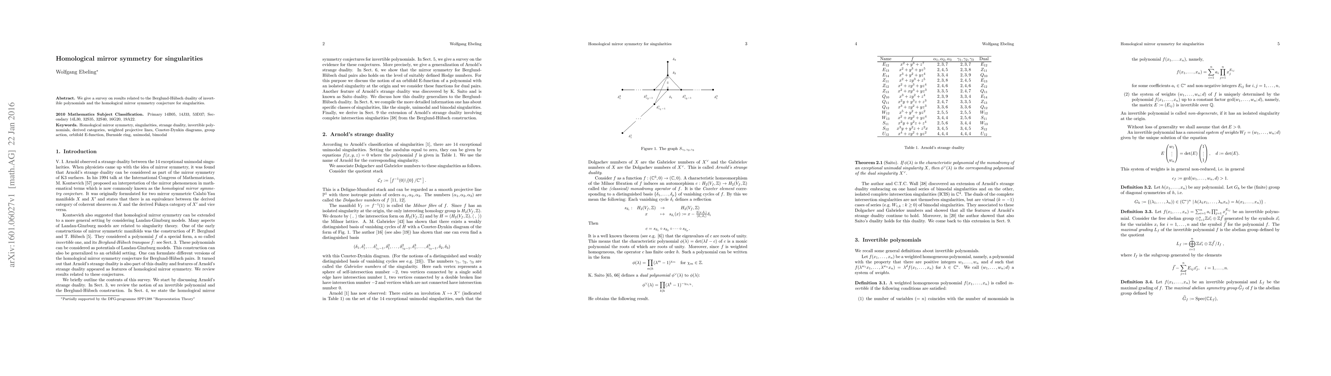 **Summary:** This paper surveys the Berglund-Hübsch duality concerning invertible polynomials and explores its implications in the context of homological mirror symmetry for singularities, linking algebraic and geometric properties.