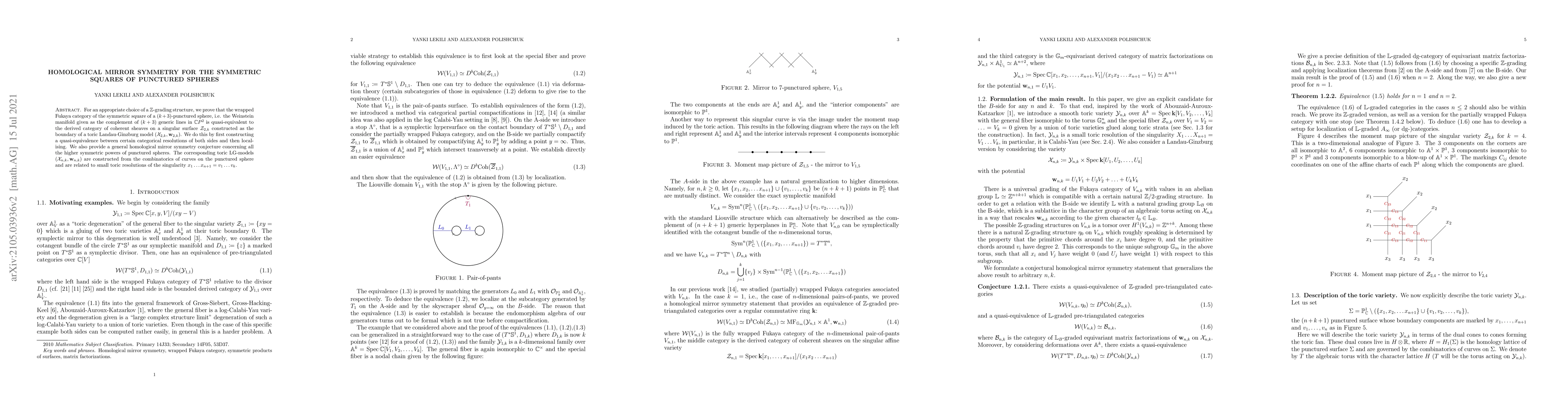 This paper proves homological mirror symmetry for the symmetric squares of punctured spheres by establishing a quasi-equivalence between the wrapped Fukaya category of the punctured sphere and the derived category of coherent sheaves on a related singular surface. It also proposes a conjecture for higher symmetric powers of punctured spheres.