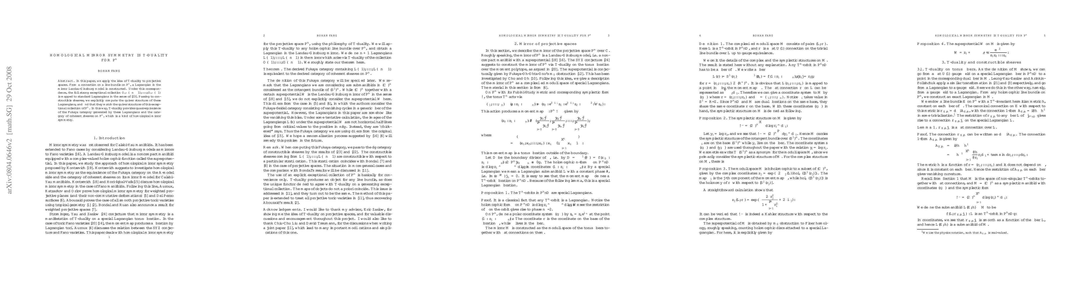 This paper explores T-duality in the context of projective spaces, showing that a line bundle on $\mathbb P^n$ corresponds to a Lagrangian in a mirror Landau-Ginzburg model. It establishes a quasi-equivalence between the Fukaya category generated by these Lagrangians and the category of coherent sheaves on $\mathbb P^n$, thus demonstrating a form of homological mirror symmetry.