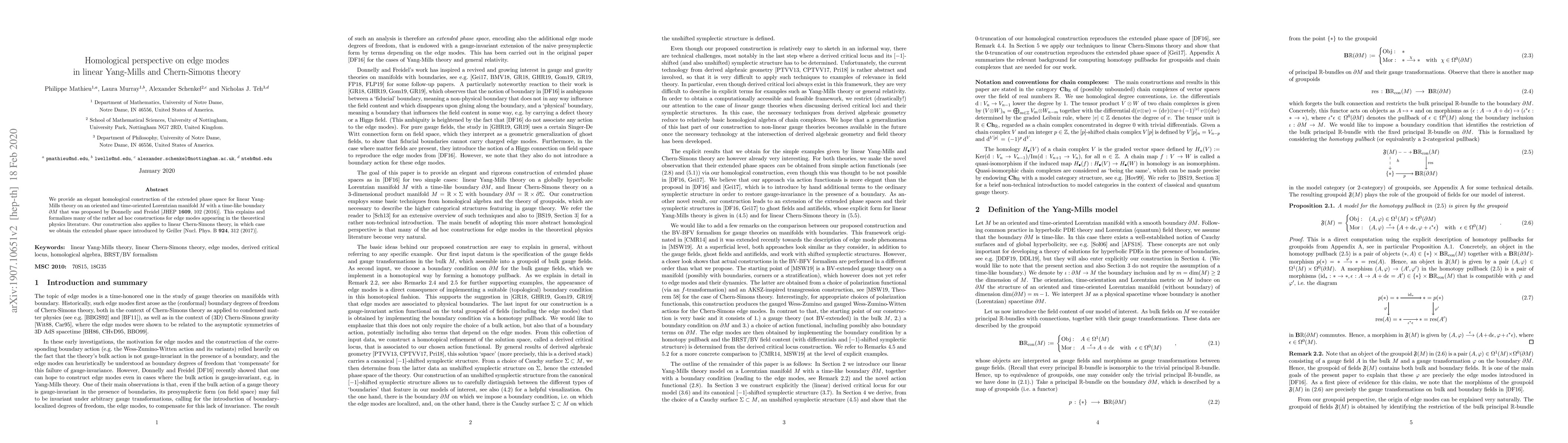This paper presents a homological framework for the extended phase space of linear Yang-Mills and Chern-Simons theories, providing a rigorous explanation for the edge modes previously found in theoretical physics literature. The method is shown to apply to both theories, formalizing their respective extended phase spaces.