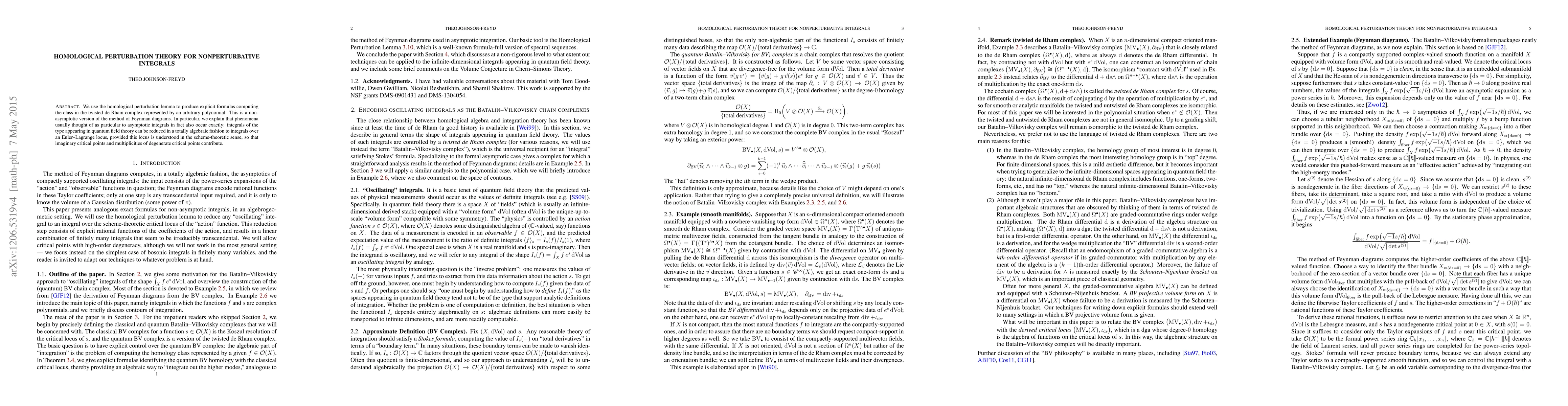 This paper employs homological perturbation theory to compute exact formulas for nonperturbative integrals in a non-asymptotic manner, analogous to Feynman diagrams, revealing that quantum field theory integrals can be algebraically reduced to scheme-theoretic Euler-Lagrange loci.