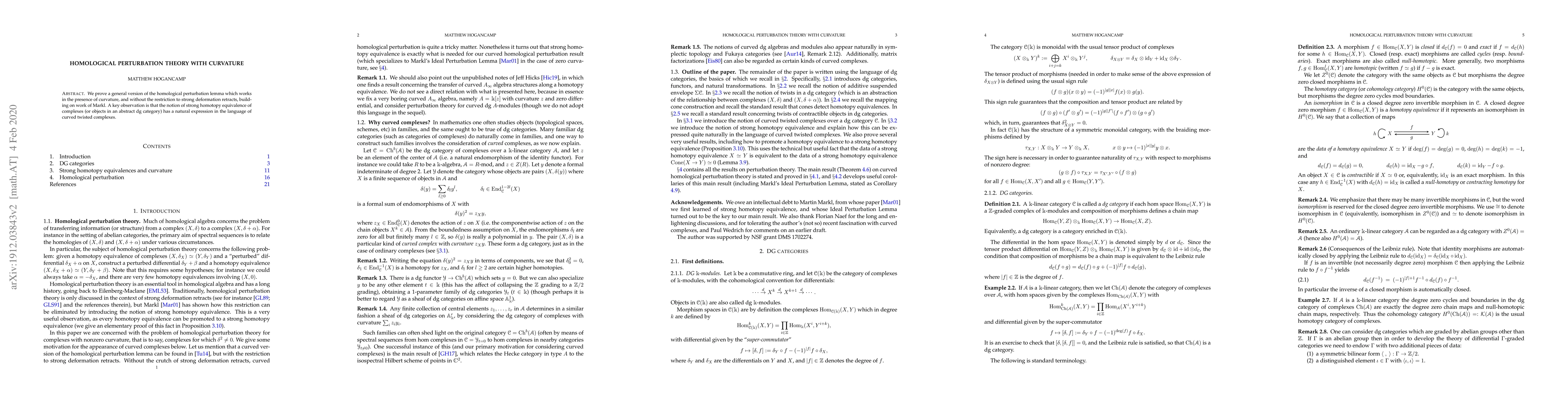 Researchers develop a new version of homological perturbation theory that works with curvature and without restrictions on deformation retracts, expanding its applications in abstract dg categories.