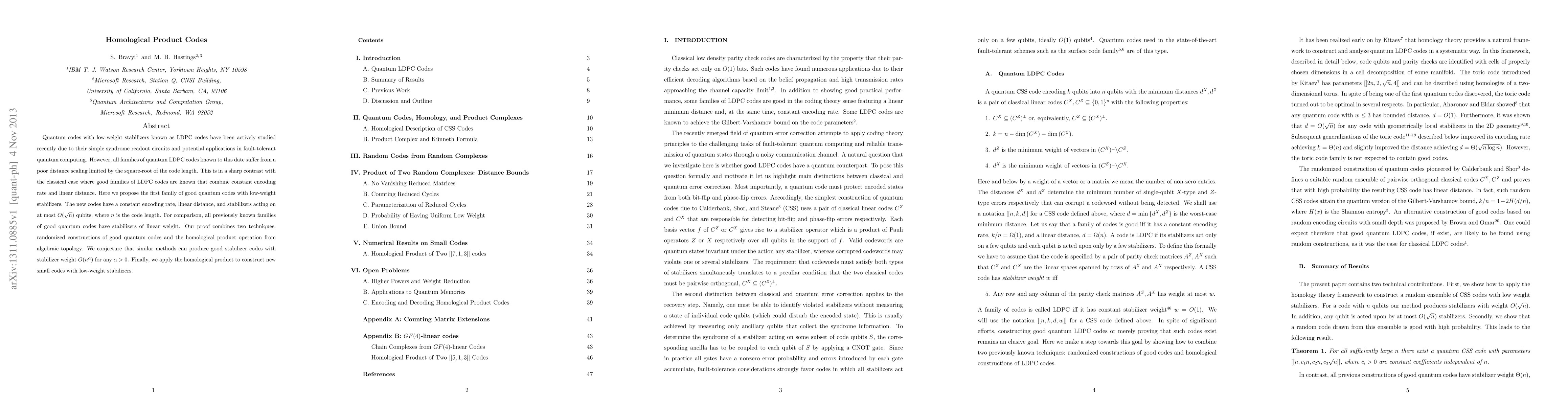 Quantum codes with low-weight stabilizers known as LDPC codes have been actively studied recently due to their simple syndrome readout circuits and potential applications in fault-tolerant quantum computing. However, all families of quantum LDPC codes known to this date suffer from a poor distance scaling limited by the square-root of the code length. This is in a sharp contrast with the classical case where good families of LDPC codes are known that combine constant encoding rate and linear distance. Here we propose the first family of good quantum codes with low-weight stabilizers. The new codes have a constant encoding rate, linear distance, and stabilizers acting on at most $\sqrt{n}$ qubits, where $n$ is the code length. For comparison, all previously known families of good quantum codes have stabilizers of linear weight. Our proof combines two techniques: randomized constructions of good quantum codes and the homological product operation from algebraic topology. We conjecture that similar methods can produce good stabilizer codes with stabilizer weight $n^a$ for any $a>0$. Finally, we apply the homological product to construct new small codes with low-weight stabilizers.