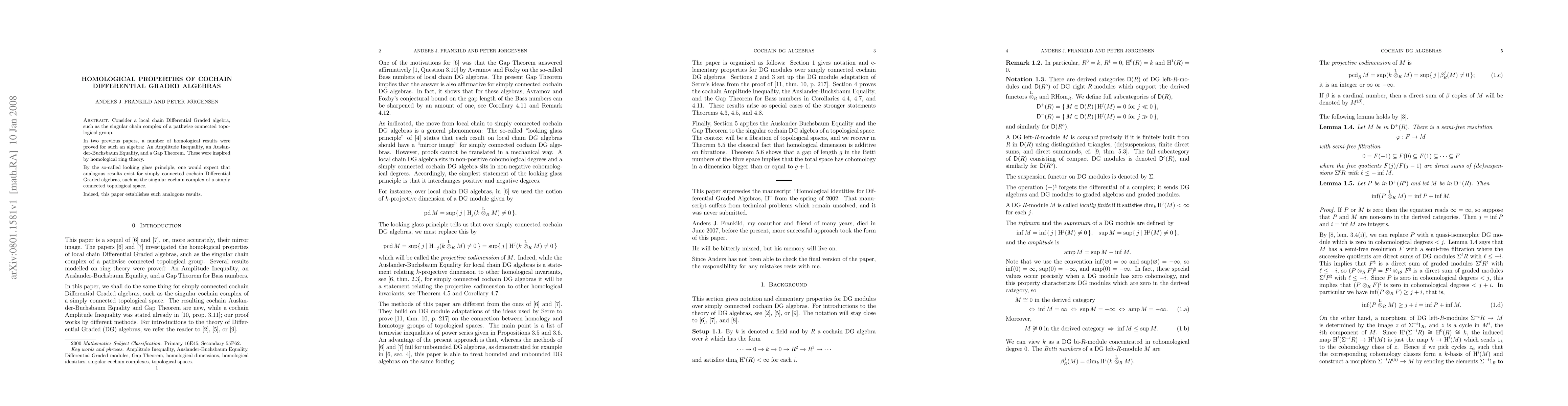 Consider a local chain Differential Graded algebra, such as the singular chain complex of a pathwise connected topological group. In two previous papers, a number of homological results were proved for such an algebra: An Amplitude Inequality, an Auslander-Buchsbaum Equality, and a Gap Theorem. These were inspired by homological ring theory. By the so-called looking glass principle, one would expect that analogous results exist for simply connected cochain Differential Graded algebras, such as the singular cochain complex of a simply connected topological space. Indeed, this paper establishes such analogous results.