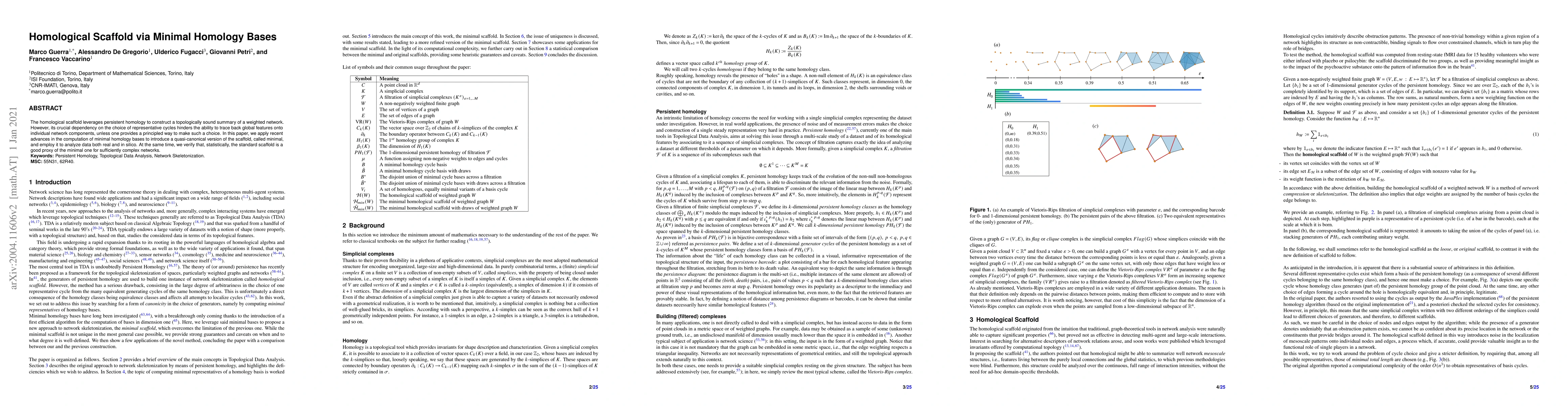This paper introduces a 'minimal' version of the homological scaffold using minimal homology bases, offering a more principled way to trace global network features to individual components. It also confirms that the standard scaffold is statistically similar to the minimal one for complex networks.