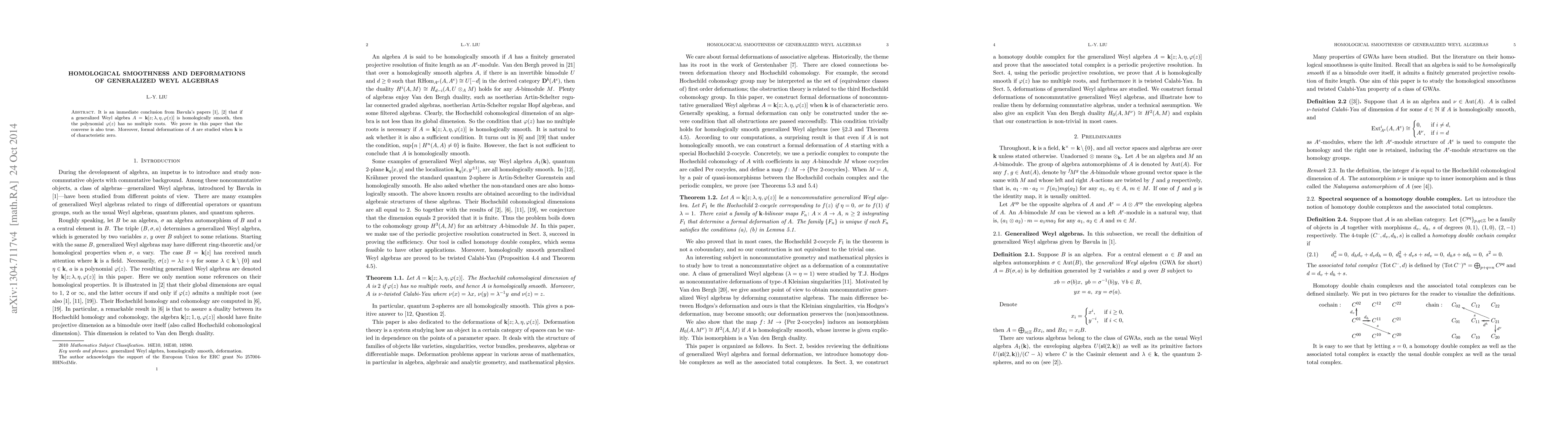 This paper studies generalized Weyl algebras and proves that if a Weyl algebra is homologically smooth, then its polynomial component has no multiple roots. It also explores formal deformations of such algebras in characteristic zero.