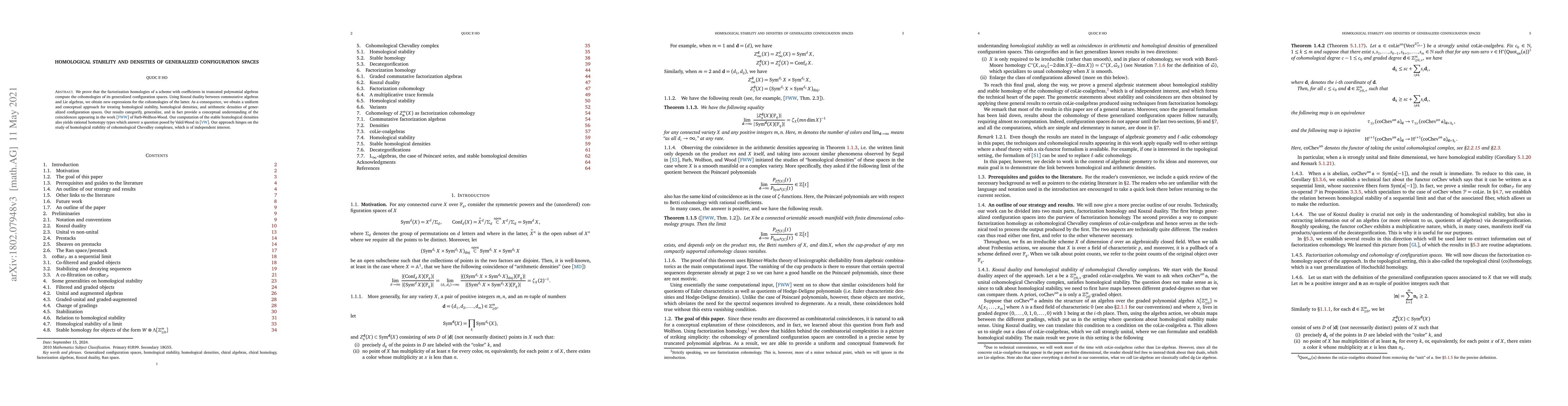 We prove that the factorization homologies of a scheme with coefficients in truncated polynomial algebras compute the cohomologies of its generalized configuration spaces. Using Koszul duality between commutative algebras and Lie algebras, we obtain new expressions for the cohomologies of the latter. As a consequence, we obtain a uniform and conceptual approach for treating homological stability, homological densities, and arithmetic densities of generalized configuration spaces. Our results categorify, generalize, and in fact provide a conceptual understanding of the coincidences appearing in the work of Farb--Wolfson--Wood. Our computation of the stable homological densities also yields rational homotopy types which answer a question posed by Vakil--Wood. Our approach hinges on the study of homological stability of cohomological Chevalley complexes, which is of independent interest.