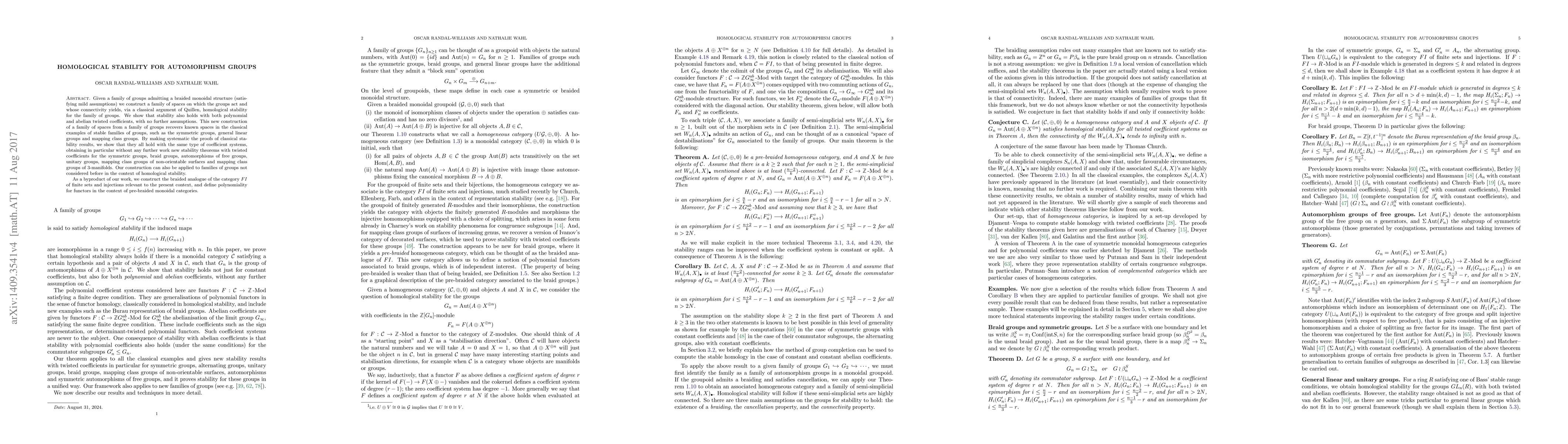 This paper constructs a family of spaces on which a family of groups with braided monoidal structures act, achieving homological stability for these groups. The method also proves stability with polynomial and abelian twisted coefficients, extending classical stability results to new families of groups and establishing the braided analogue of the category FI for relevance in homological stability.